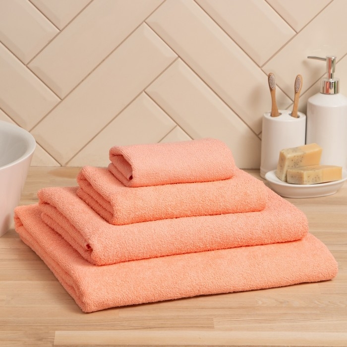Полотенце махровое Экономь и Я 70*130 см, цв. персиковый, 100% хлопок, 350 гр/м2
