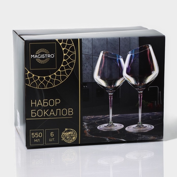 Набор бокалов для вина стеклянный Magistro «Иллюзия», 550 мл, 10×24 см, 6 шт, цвет розовый