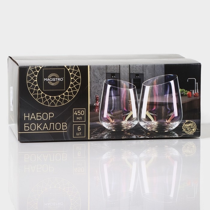 Набор стаканов стеклянных Magistro «Иллюзия», 450 мл, 9,5×11,5 см, 6 шт, цвет розовый