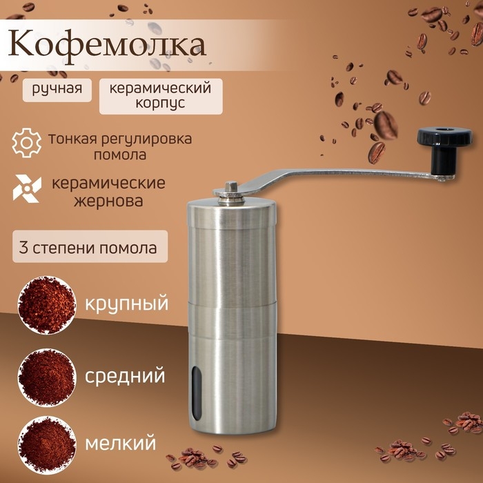 Кофемолка ручная «Кофейные зёрна», 10×10×18 см, керамический корпус