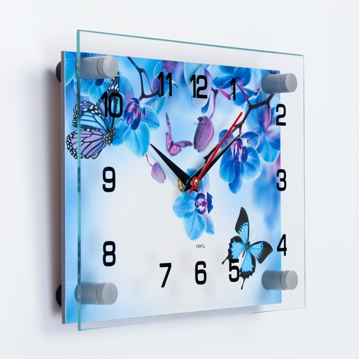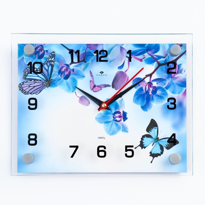 Часы настенные, интерьерные "Фиолетовые Орхидеи и бабочки", 20 х 26 см