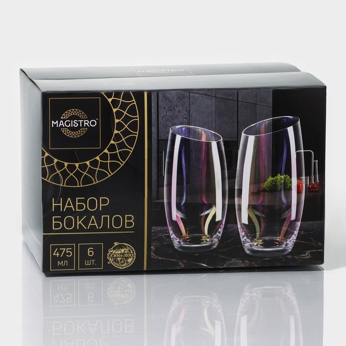 Набор стаканов стеклянных Magistro «Иллюзия», 475 мл, 8×15 см, 6 шт, цвет золотой