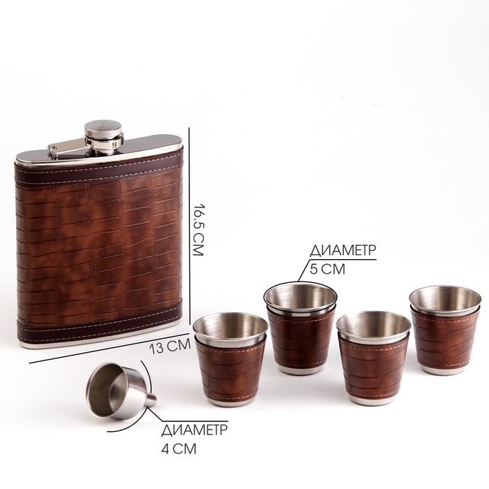 Подарочный набор "Майкл" 4 в 1: фляжка 240 мл, воронка, 2 рюмки, коричневый, 15 х 17 см