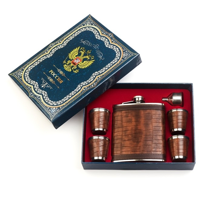 Подарочный набор 6 в 1: фляжка 540 мл, 4 стопки по 75 мл, воронка