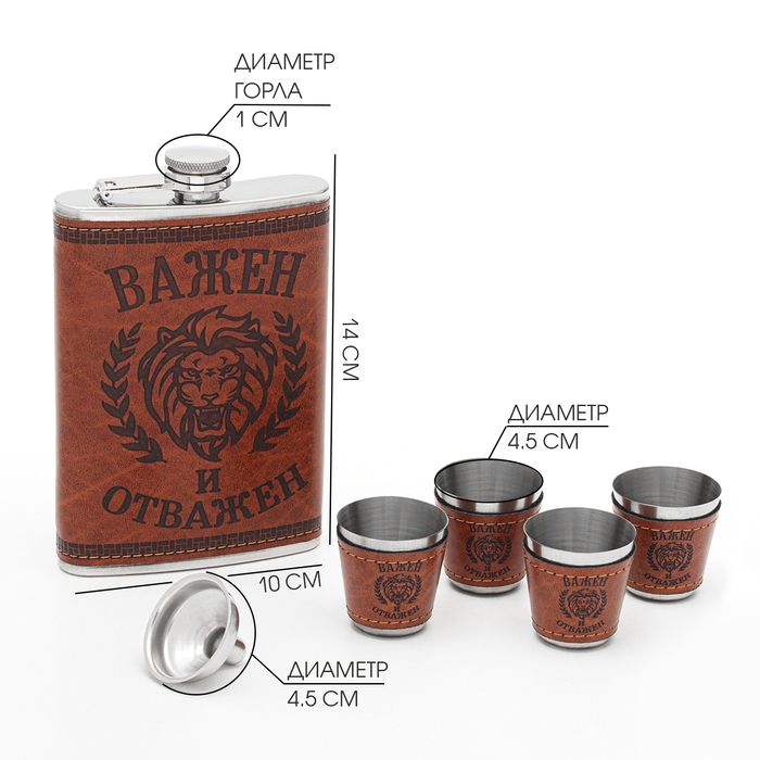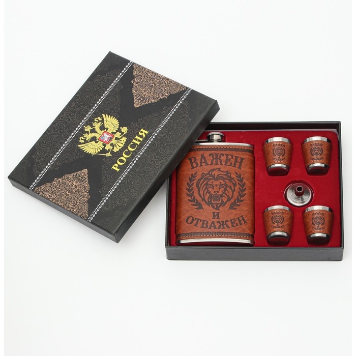 Подарочный набор 6 в 1 "Важен и отважен": фляжка 270 мл, 4 стопки по 40 мл, воронка