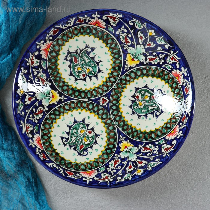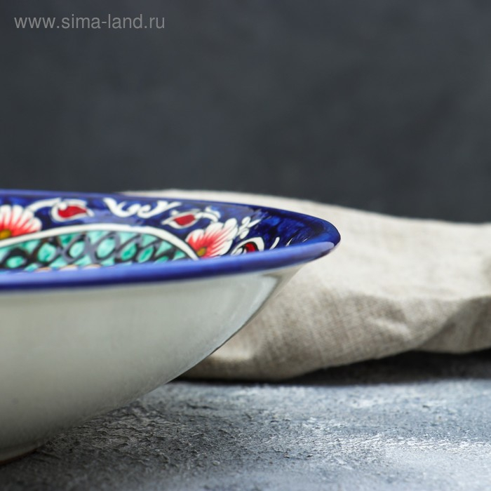 Ляган Риштанская Керамика "Узоры", 33 см, глубокий, синий