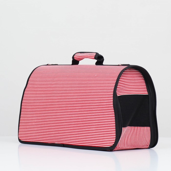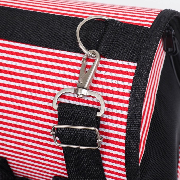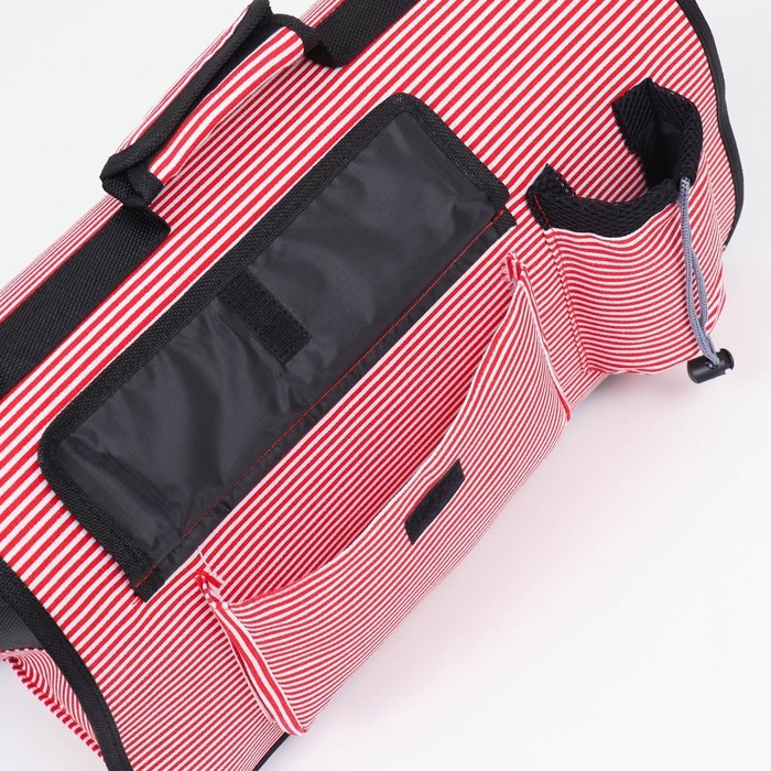 Сумка - переноска для животных "Полоски" с органайзером, розовая, размер M, 40 х 26 х 20 см
