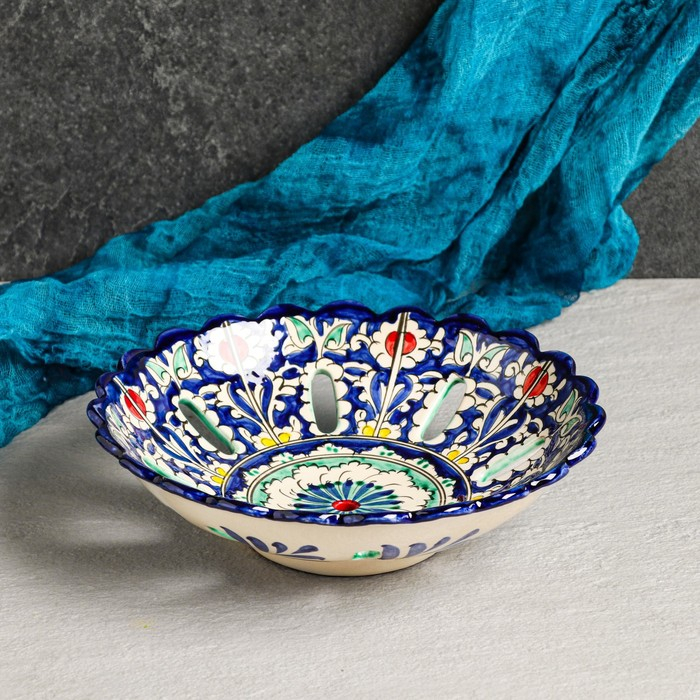 Фруктовница Риштанская Керамика "Узоры", 23 см, синяя