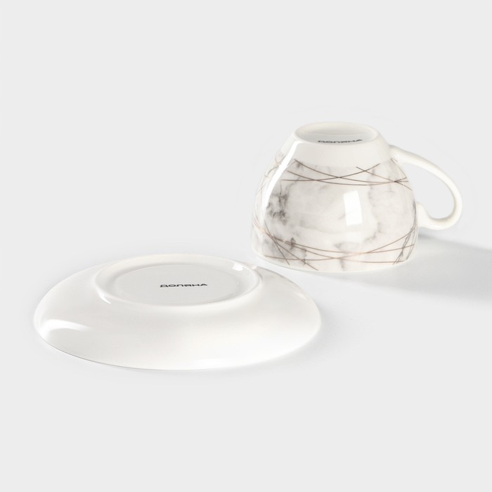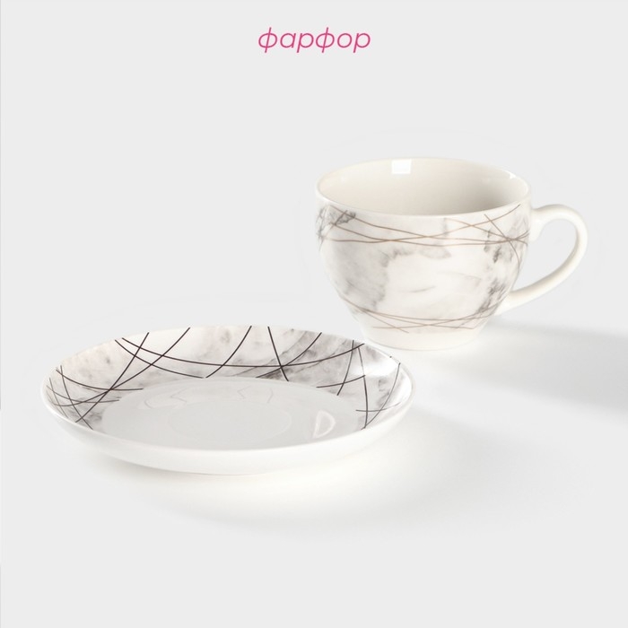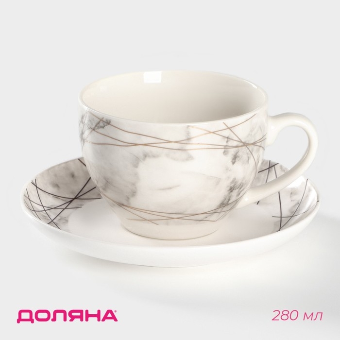 Чайная пара фарфоровая Доляна «Мрамор», 2 предмета: чашка 280 мл, блюдце d=15 см