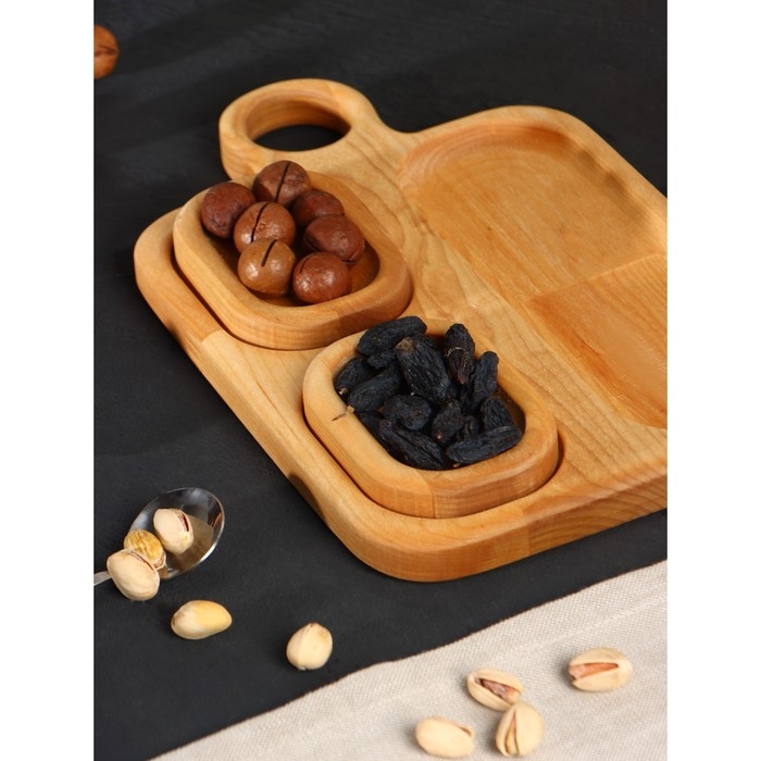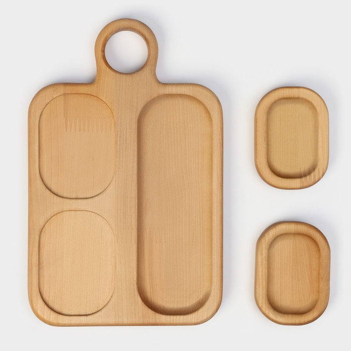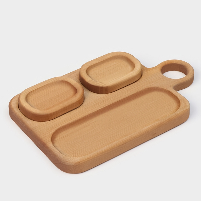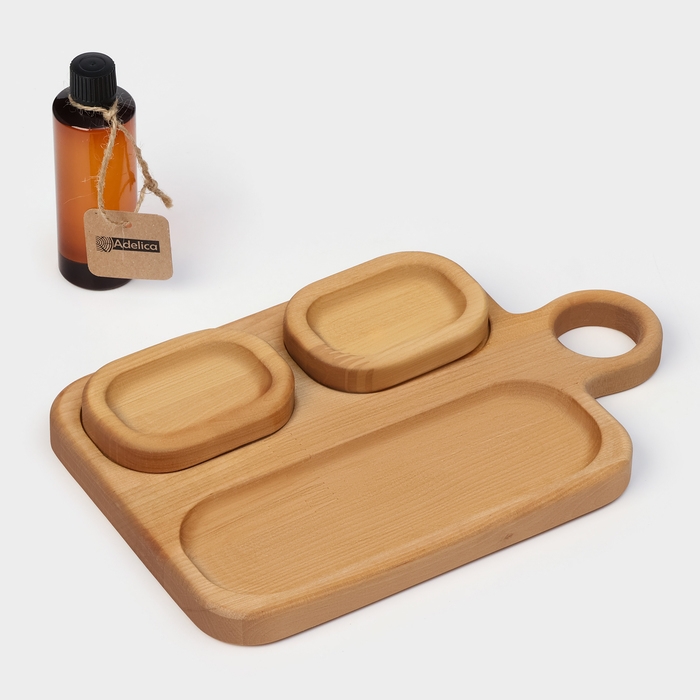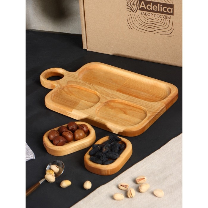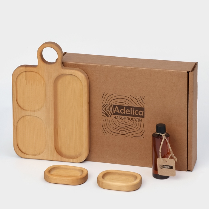 Подарочный набор деревянной посуды Adelica, доска сервировочная 3 секции, 2 менажницы съёмные, масло в подарок 100 мл, берёза