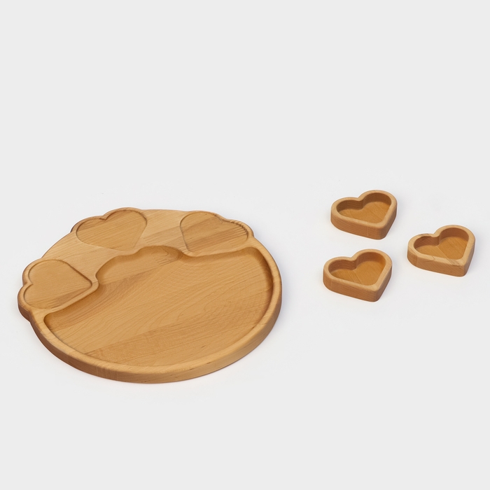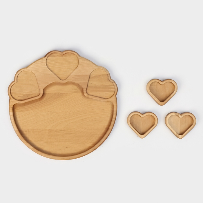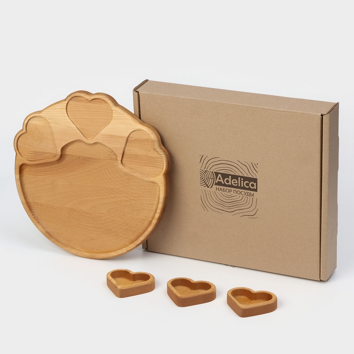 Подарочный набор деревянной посуды Adelica, поднос с 3 соусниками, 30×28×1,8 см, в подарочной коробке, берёза