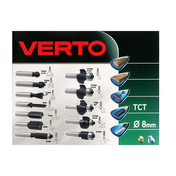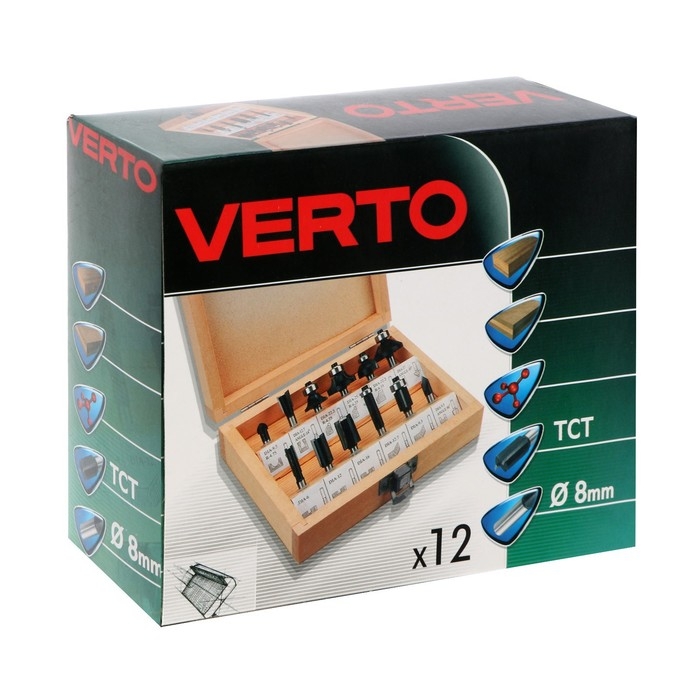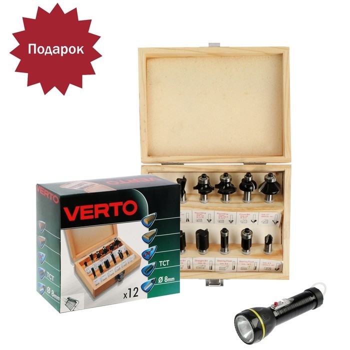 Сверла-фрезы VERTO 60H010, по дереву, набор 12 шт., хвостовик 8 мм + ПОДАРОК
