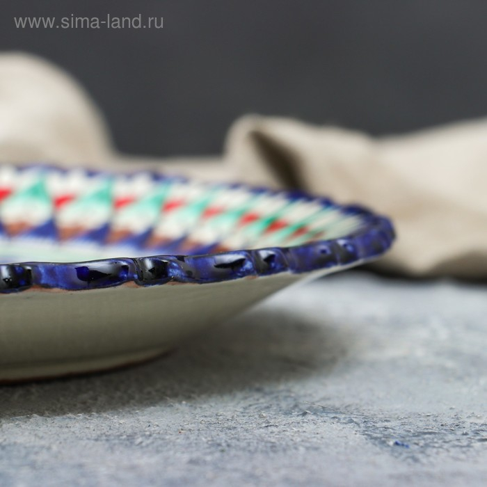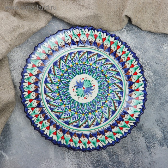 Тарелка Риштанская Керамика "Цветы", синяя, рельефная, 27см