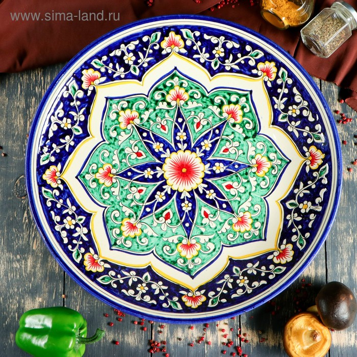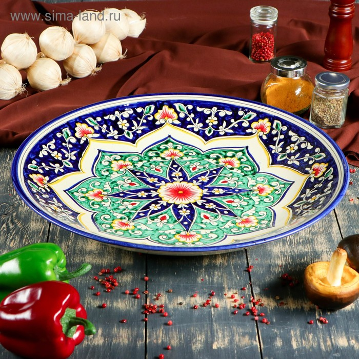 Ляган Риштанская Керамика "Узоры", 42 см, синий микс