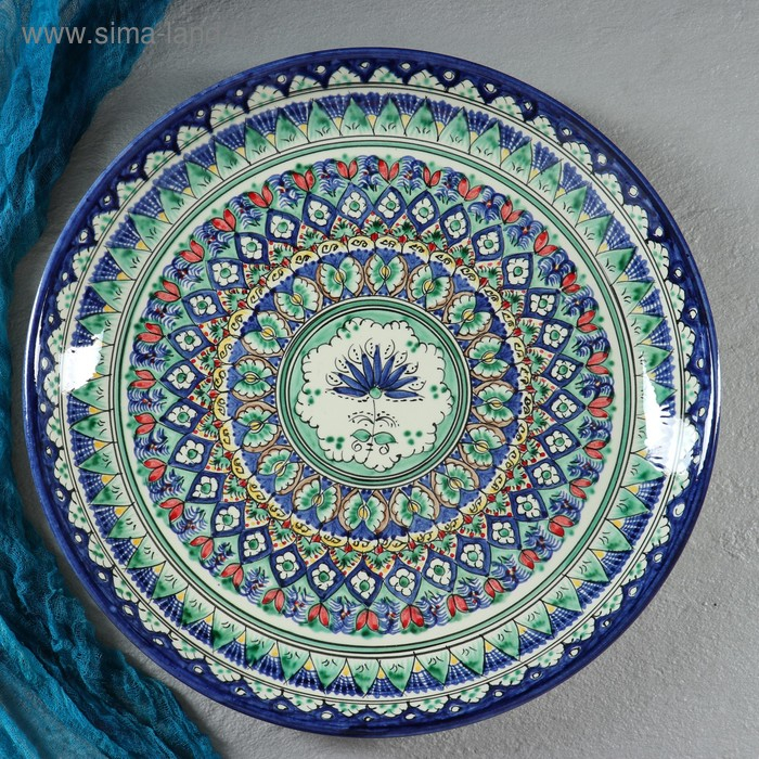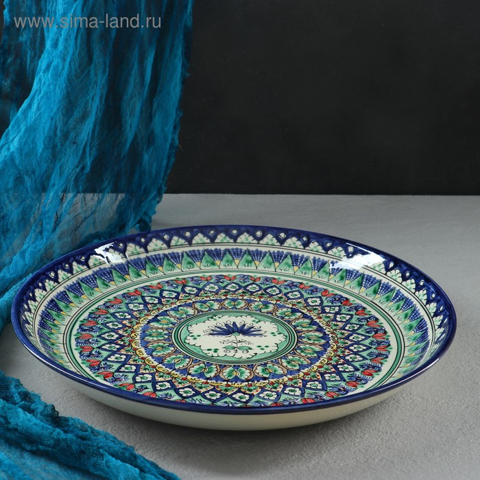Ляган Риштанская Керамика "Узоры", 36 см, синий