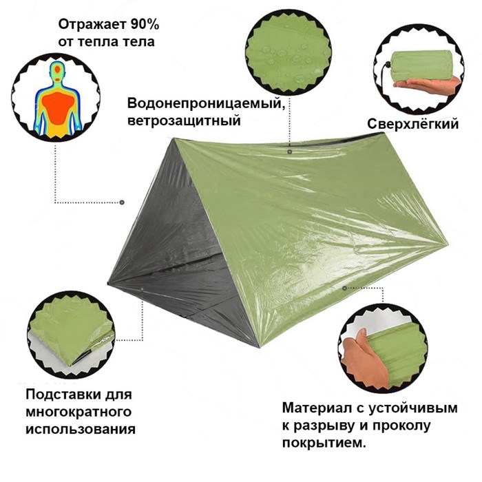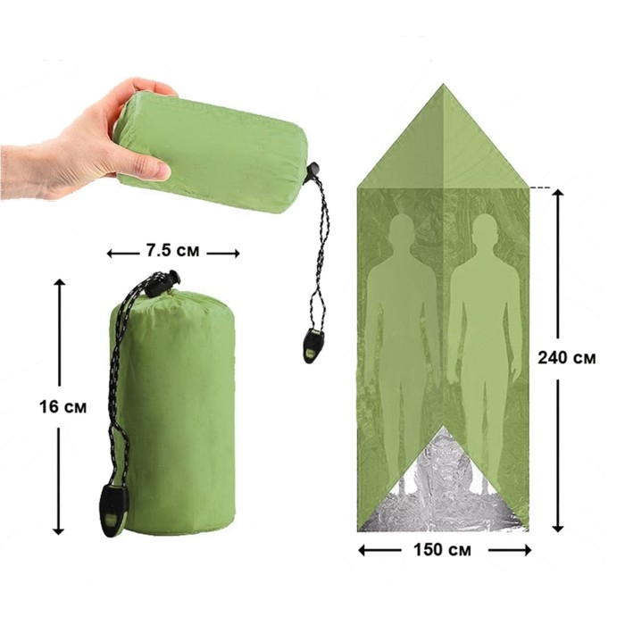 Термоодеяло универсальное "Аdventure" (трансформируемое в палатку, спальный мешок), зеленое
