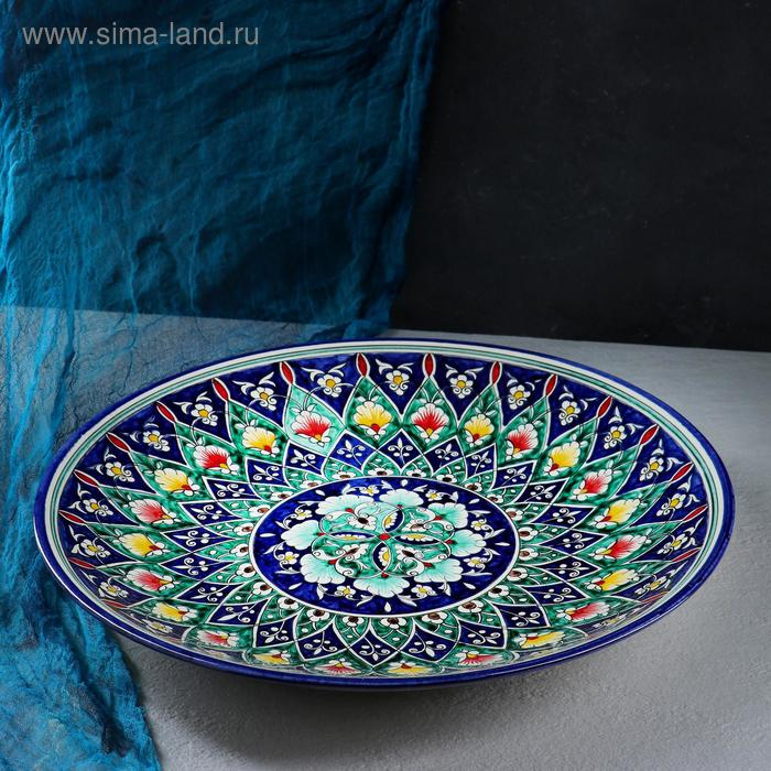 Ляган Риштанская Керамика "Цветы", 41 см, синий