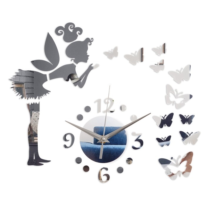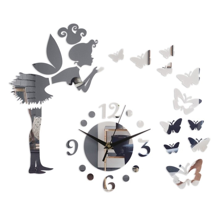 Часы настенные интерьерные, детские, 3d "Фея с бабочками", наклейка, большие, 60 х 60 см