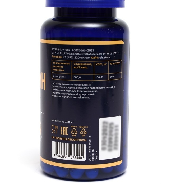 L-Цитруллин GLS аминокислота для энергии и выносливости, 90 капсул по 320 мг