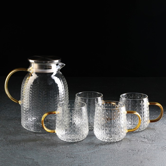 Набор для напитков из стекла Magistro «Голден», 5 предметов: кувшин 1 л, 4 кружки 350 мл, цвет золотой