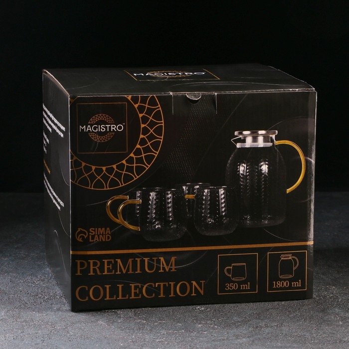 Набор для напитков из стекла Magistro «Хрусталик», 5 предметов: кувшин 1,8 л, 4 кружки 350 мл