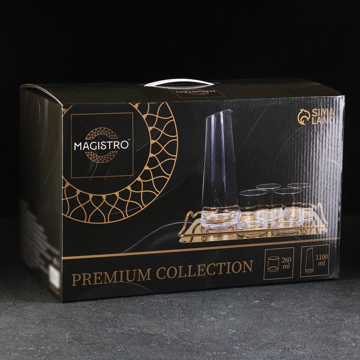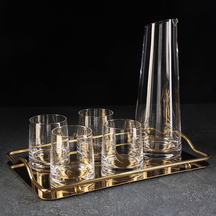 Набор для напитков из стекла Magistro «Гармония», 6 предметов: кувшин 1,1 л, 4 бокала 260 мл, поднос