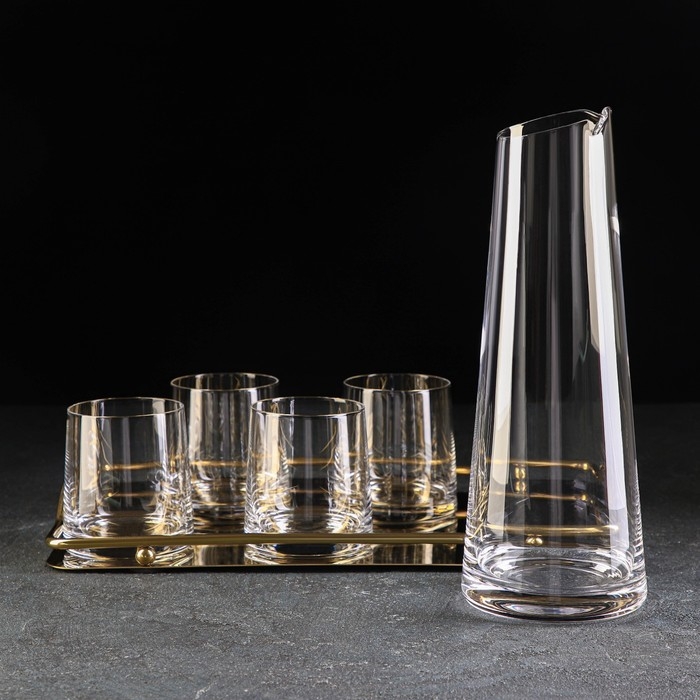 Набор для напитков из стекла Magistro «Голден», 5 предметов: кувшин 1 л, 4 кружки 350 мл, цвет золотой