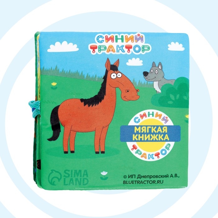 - Внутри книги изображены персонажи любимого мультфильма «Синий трактор», которые понравятся крохе.
