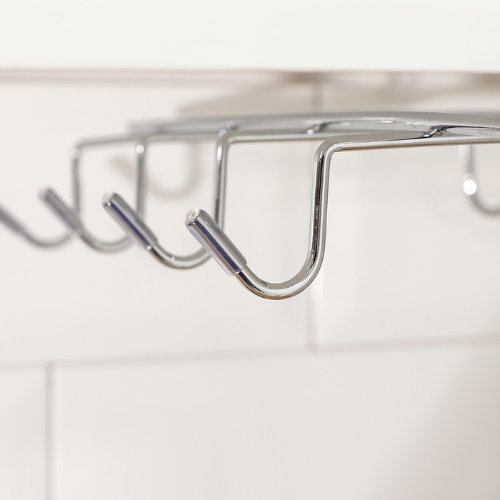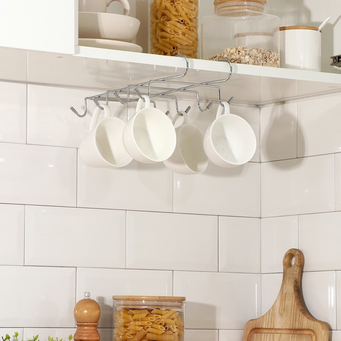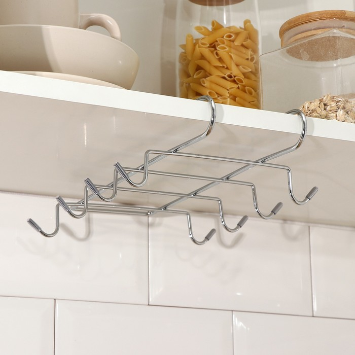 Держатель для кружек подвесной на 8 предметов Доляна, 27,5×20×7,5 см, на толщину полки 3,5 см, цвет хром