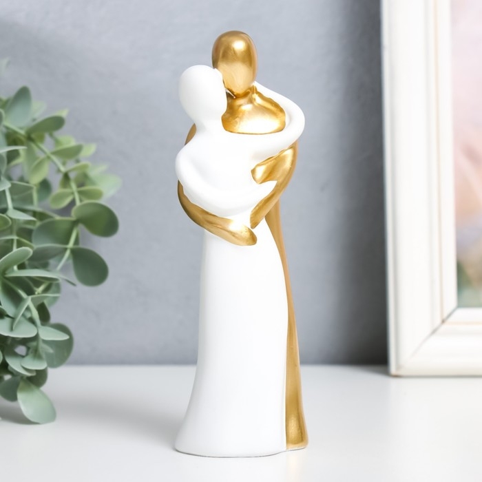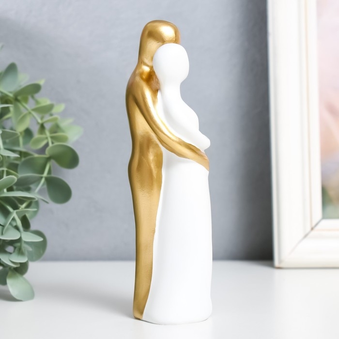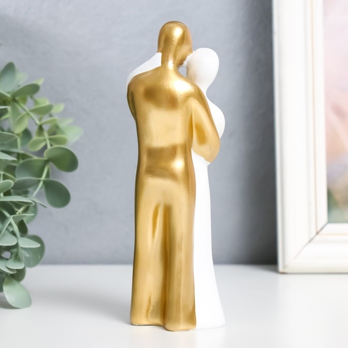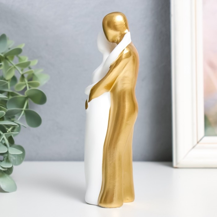 Сувенир полистоун "Влюблённые - объятия" бело-золотой 15х4,5 см