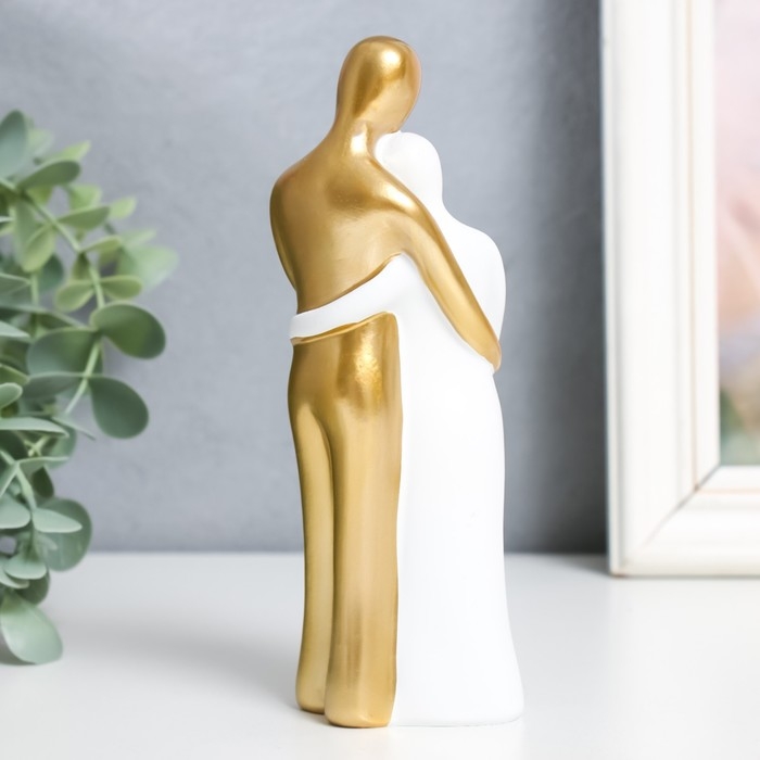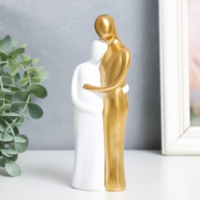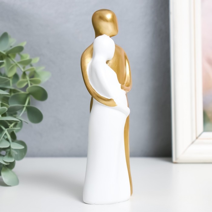 Сувенир полистоун "Молодая семья - ожидание чуда" бело-золотой 15х5 см