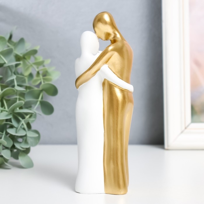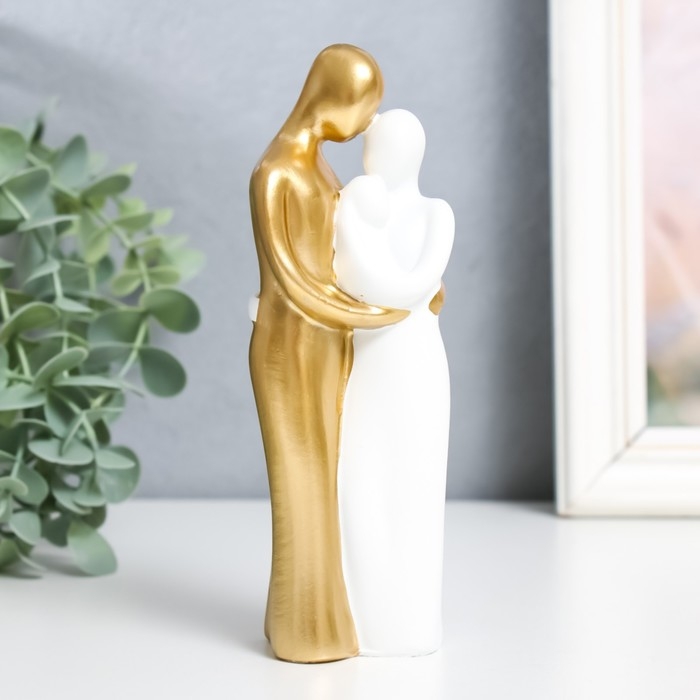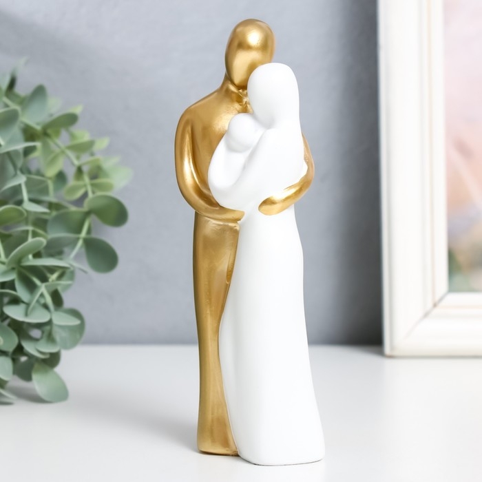 Сувенир полистоун "Папа, мама и я" бело-золотой 15х5 см