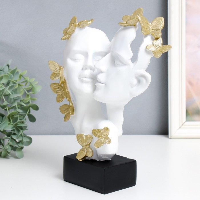 Сувенир полистоун бюст "Пара - Нежность. Рой бабочек" белый с золотом 7х21,5х29 см