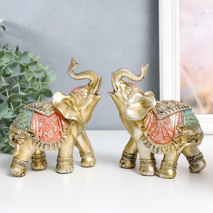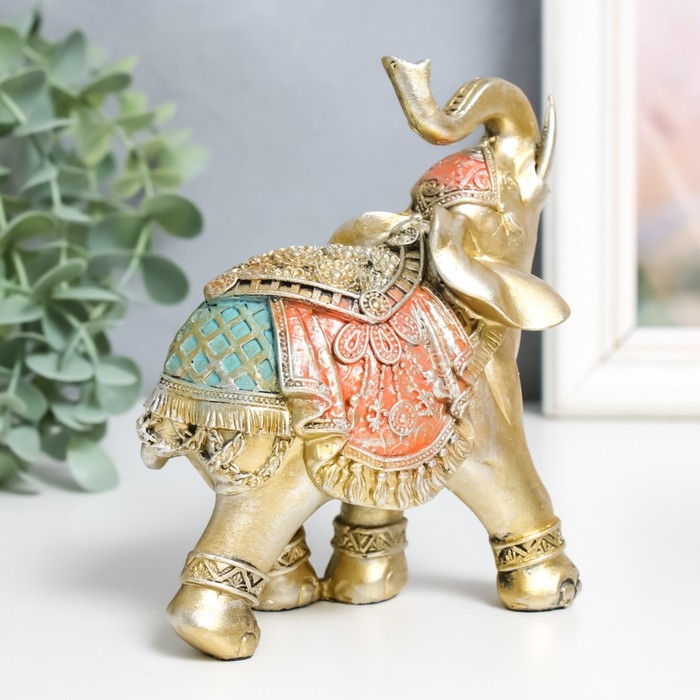 Сувенир полистоун "Золотой слон в цветной богатой попоне" МИКС 6х11х13 см