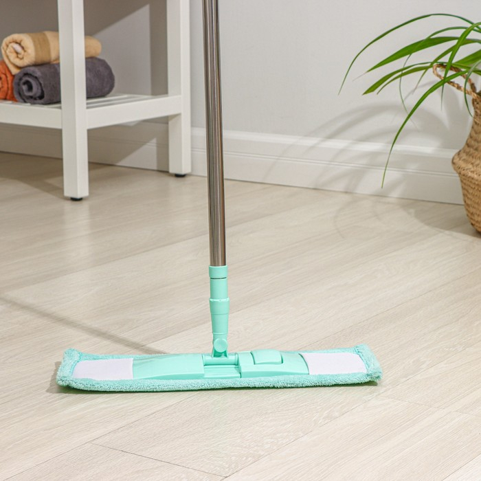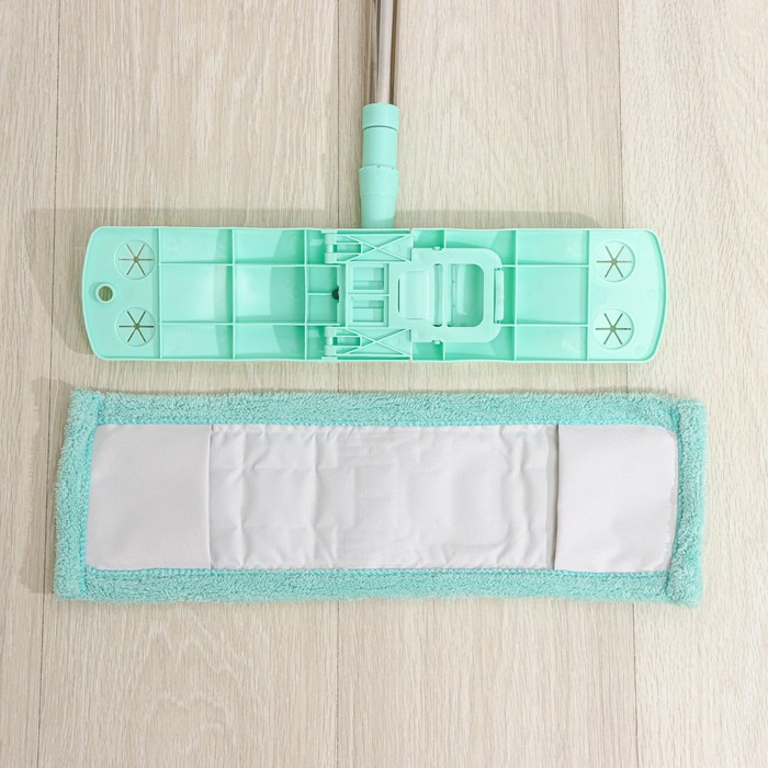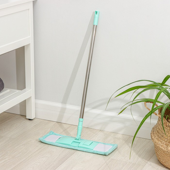 Швабра для мытья пола плоская Доляна, насадка из микрофибры 40×10 см, телескопическая стальная ручка 68(122) см