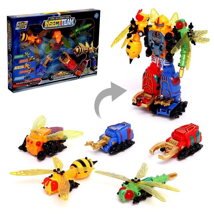 Набор инерционных роботов «Команда насекомых», трансформируются, собираются в одного робота