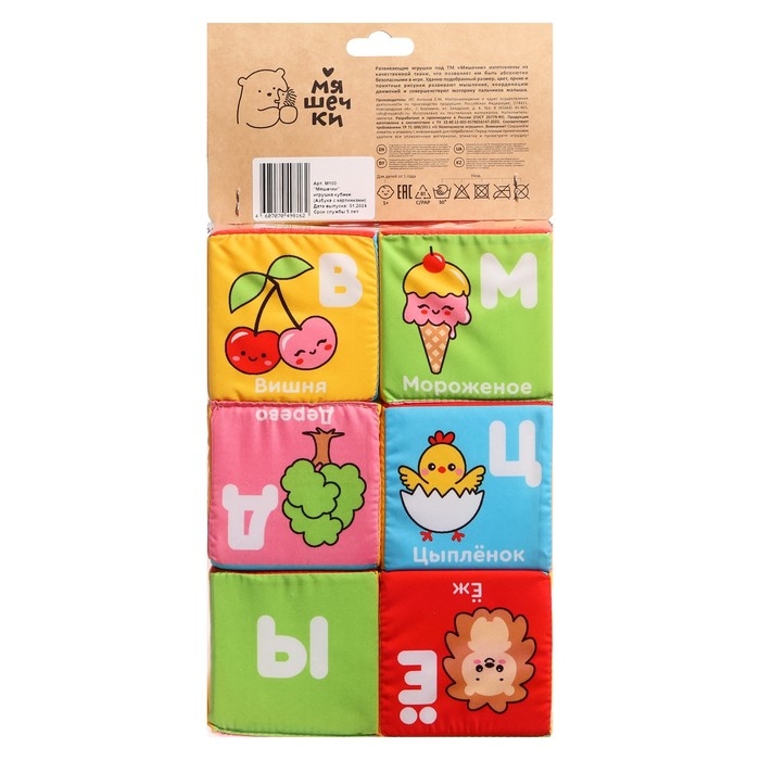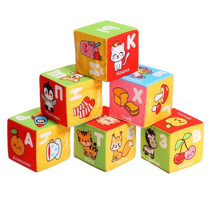 Развивающие кубики «Азбука с картинками», 6 шт., 8 см