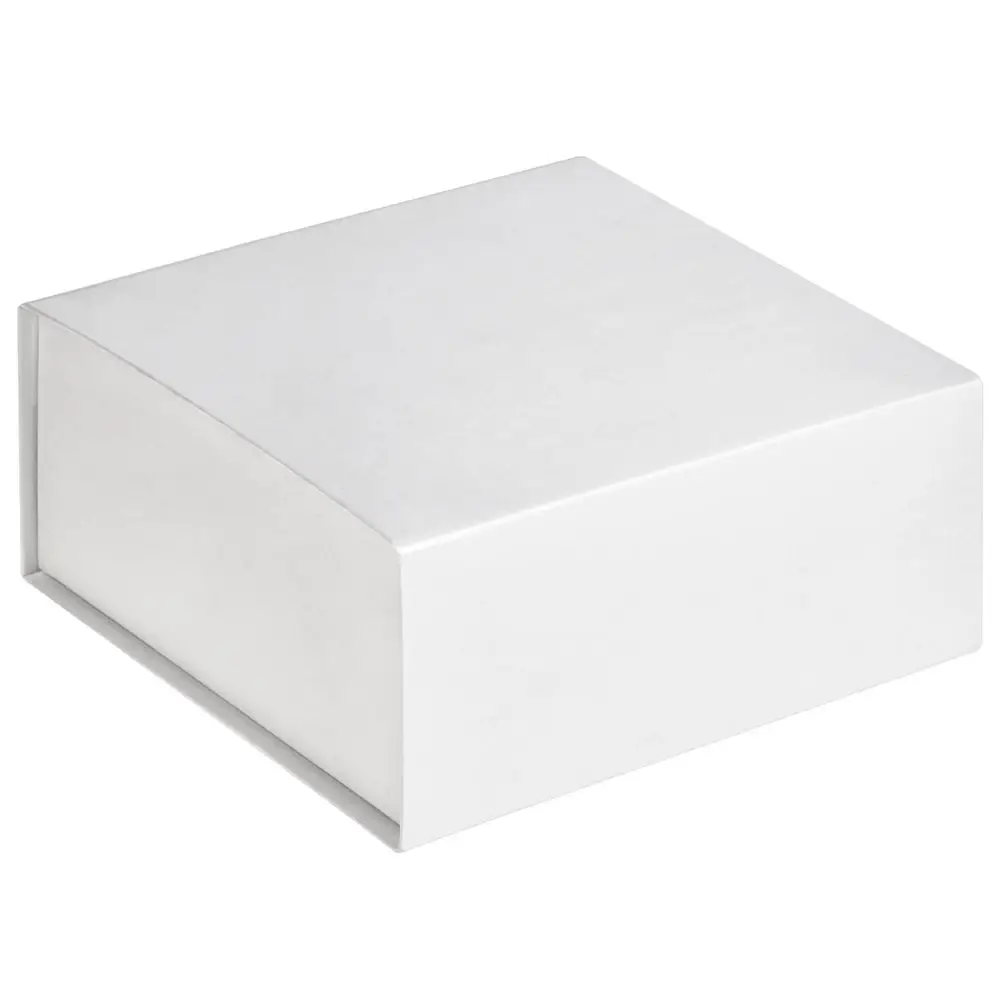 Коробка изготовлена из переплетного картона, кашированного дизайнерской бумагой Majestic Marble White, с крышкой на магните.