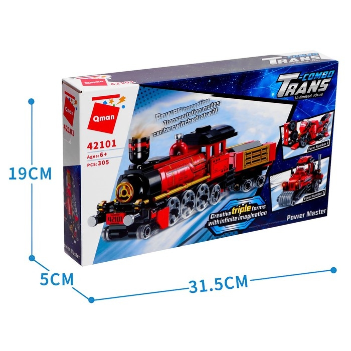 Конструктор Трансформер «Паровоз», 3 варианта сборки, 305 деталей