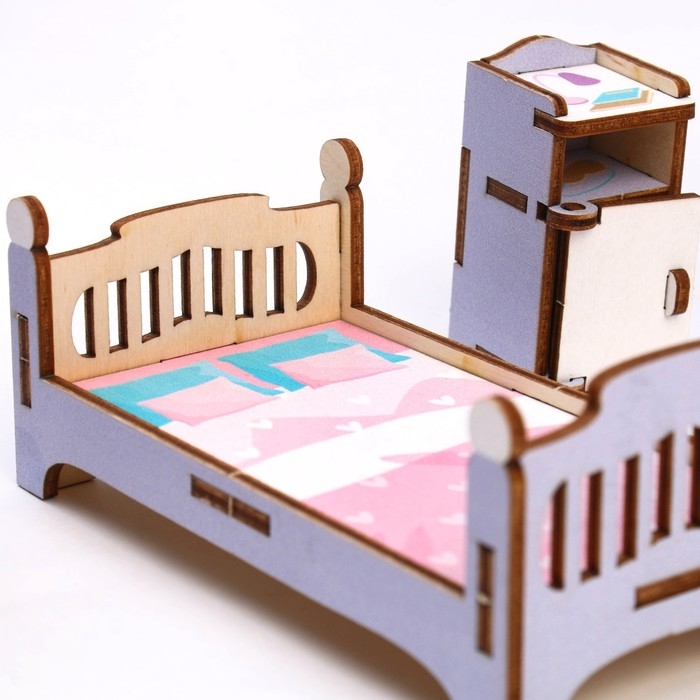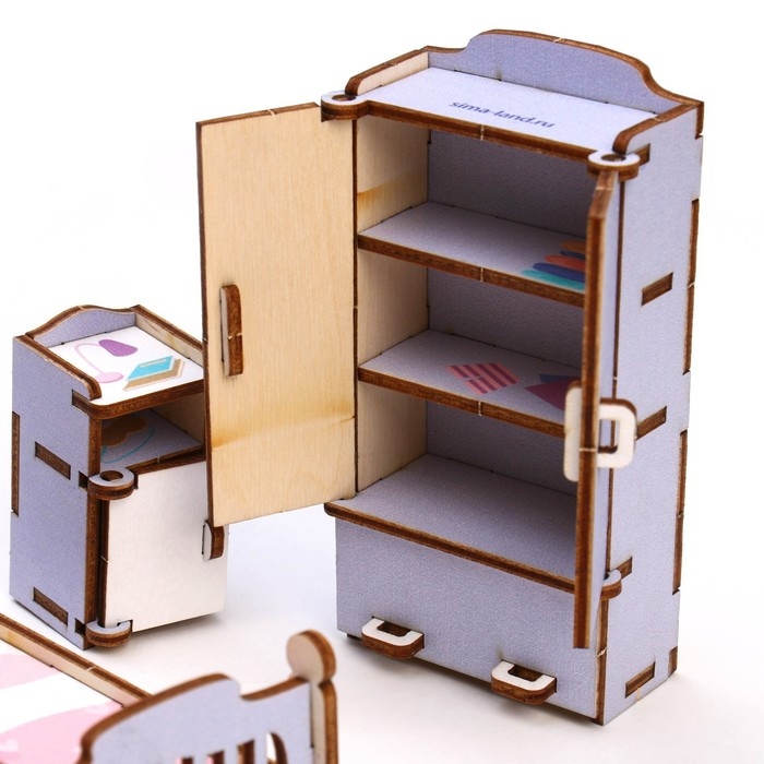 Создайте миниатюру настоящей комнаты из деревянных деталей. Предметы мебели сделаны из экологически натурального и безопасного материала. Изделия выглядят очень реалистично и идеально подойдут как для игр малыша, так и в качестве декора для детской.