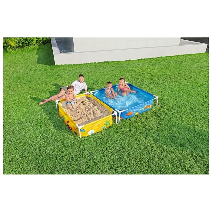 Бассейн с песочницей — отличный вариант летнего досуга для малышей. Для установки изделия потребуется только ровная площадка, очищенная от острых предметов.