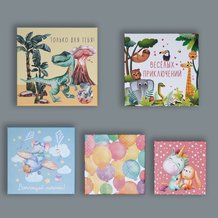 Набор коробок 5 в 1, упаковка подарочная, «Детский», 14 х 14 х 8‒22 х 22 х 12 см