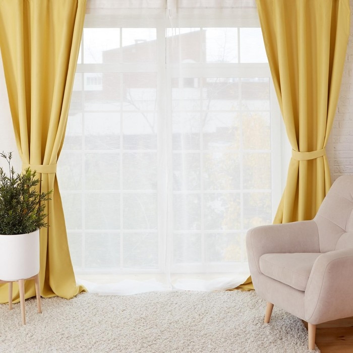 Штора портьерная "Этель" 250х265, цв.желтый, блэкаут, 100% п/э