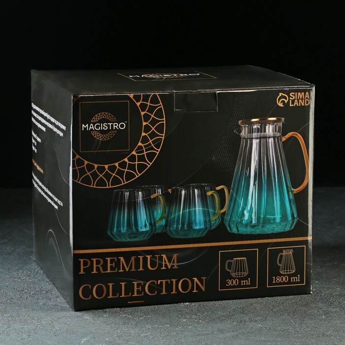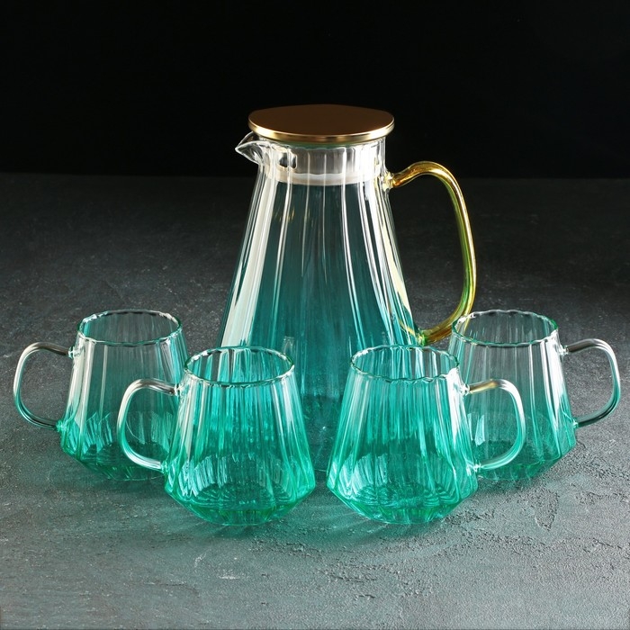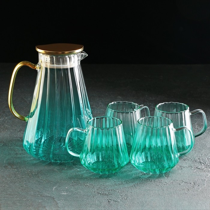 Набор для напитков из стекла Magistro «Градиент», 5 предметов: кувшин 1,8 л, 4 кружки 300 мл, цвет бирюзовый