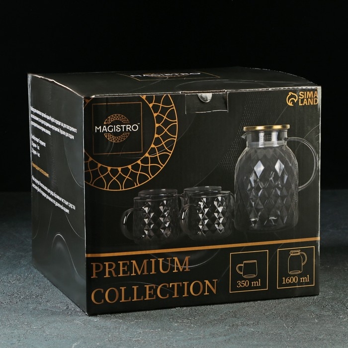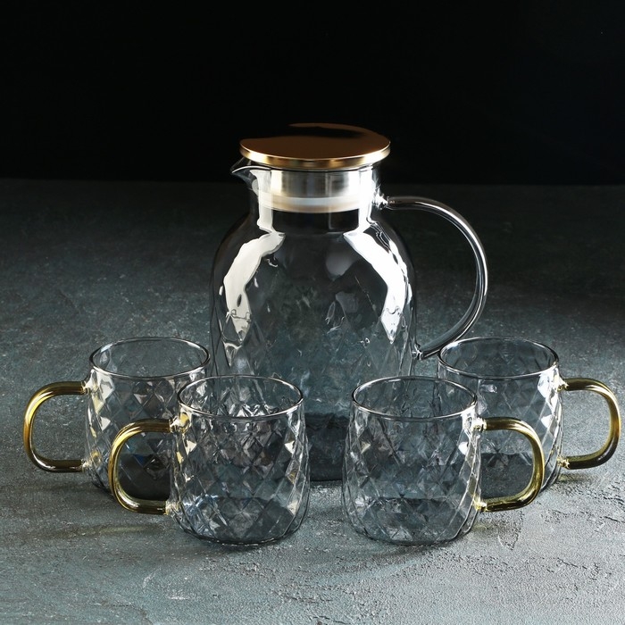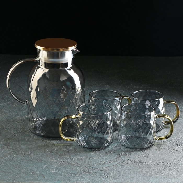 Набор для напитков из стекла Magistro «Дарк. Ромб», 5 предметов: кувшин 1,6 л, 4 кружки 350 мл, цвет серый