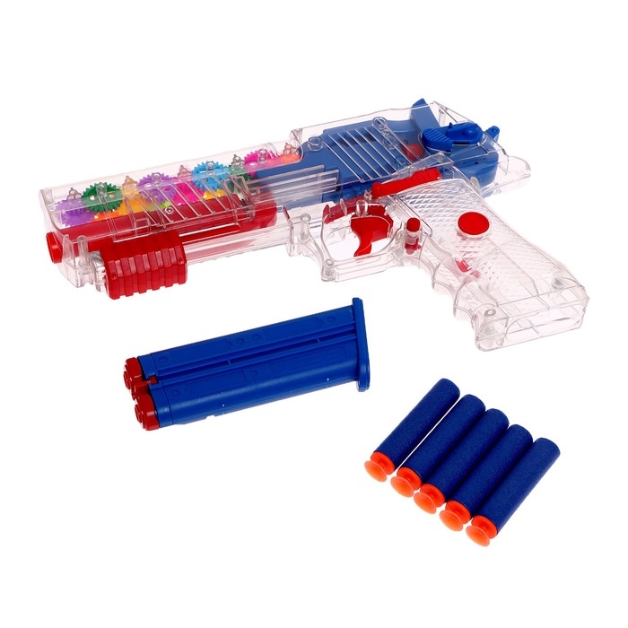Пистолет «Техно», с шестеренками, стреляет мягкими пулями, свет, звук