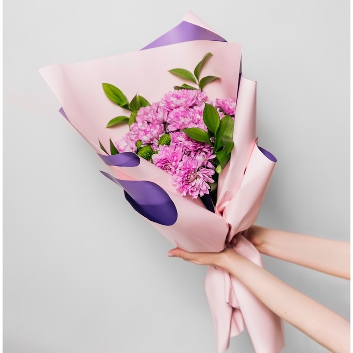 Плёнка для цветов упаковочная пудровая двухсторонняя «Лаванда + нежно-розовый», 50 мкм, 0.5 х 9 м