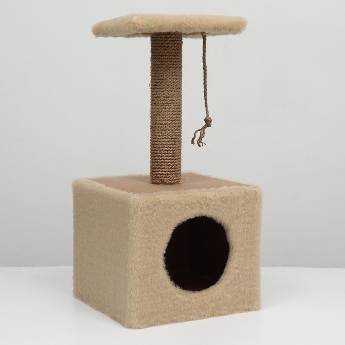 Домик для животных, с когтеточкой и полкой, джут, 32 х 32 х 64, бежевый