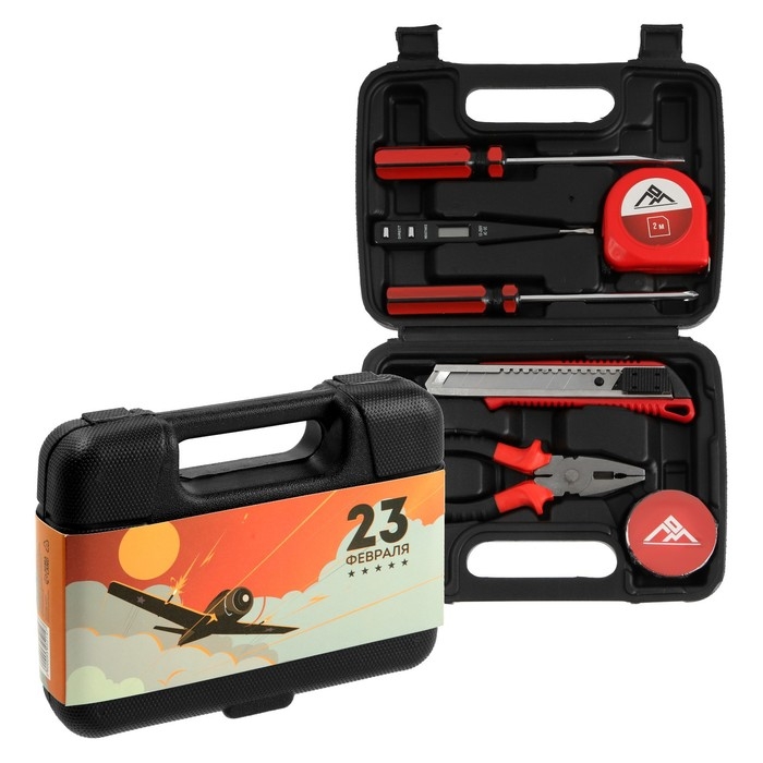Набор инструментов в кейсе ЛОМ "23 ФЕВРАЛЯ", в подарочной упаковке, 7 предметов