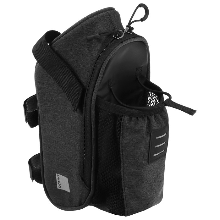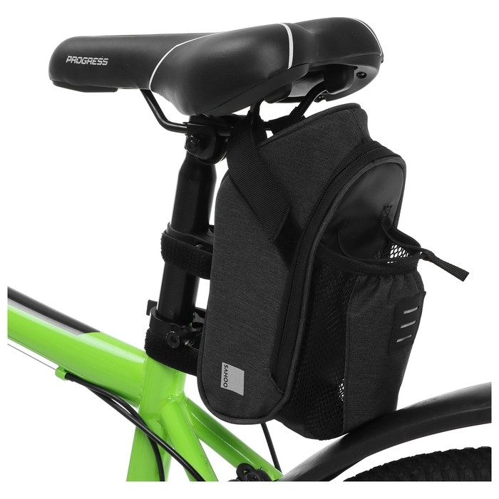 Велосумка крепиться под село велосипеда. Имеет один отсек на молнии и дополнительный отсек под бутылку.